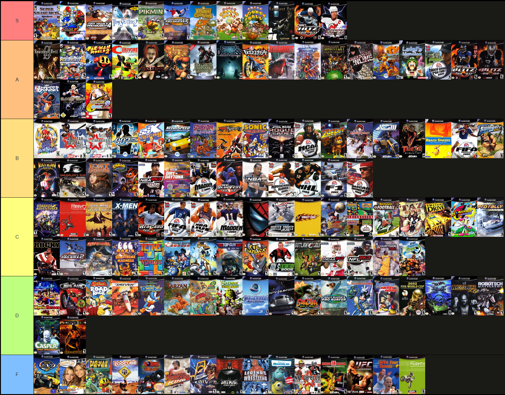Here is my personal GameCube game tier list, which I update every time I beat 12 games. Why 12? It's because that's how many launch titles there were